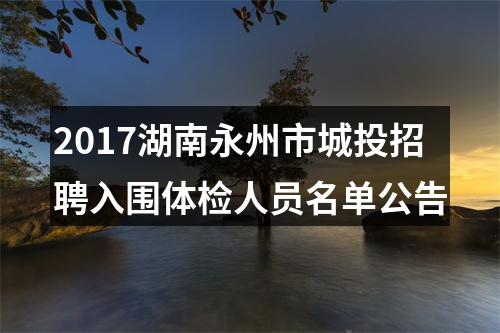 声明:专注 2017湖南永州市城投招聘入围体检人员名单公告 相关岗位分析;专业指导面试技巧;保障就业成功概率。