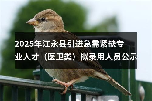 原标题:江永县2025年引进急需紧缺专业人才(医卫类)拟录用人员公示
