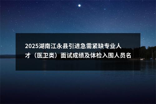 原标题:江永县2025年引进急需紧缺专业人才(医卫类)面试成绩及体检入围人员名单公告