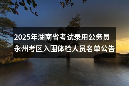 原标题:关于发布湖南省2025年考试录用公务员永州考区入围体检人员名单的公告
