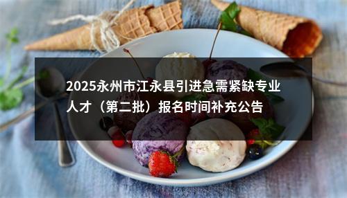 原标题:关于江永县2025年引进急需紧缺专业人才(第二批)报名时间的补充公告